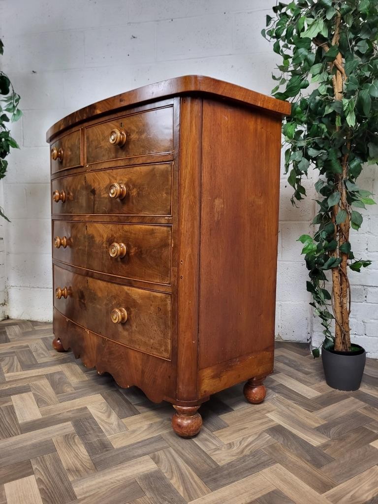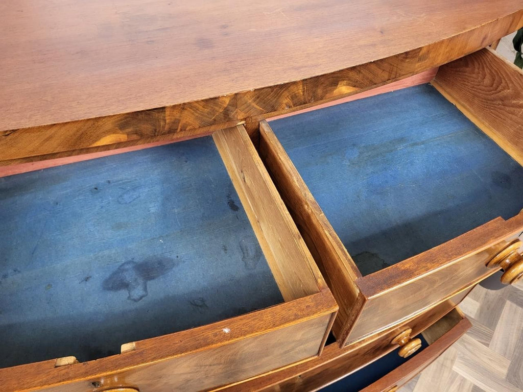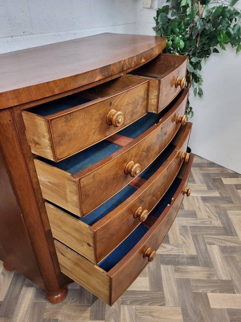 Beautiful Antique Victorian Large Mahogany & Walnut Chest Of Drawers Bow Fronted