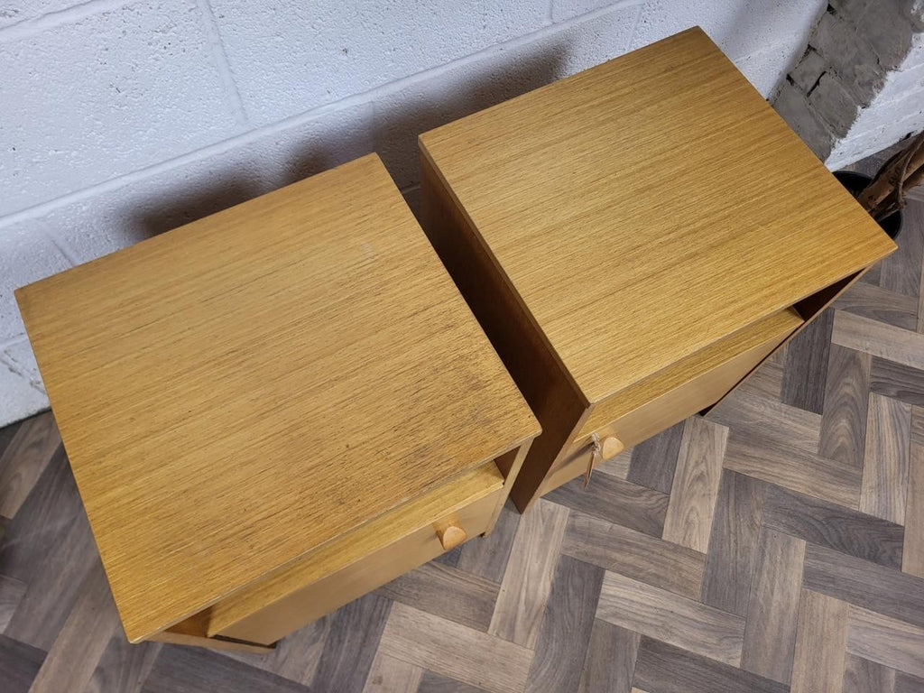 Pair Of Vintage Mid-Century Avalon Blonde Oak Bedside Cabinets Scandi Retro MCM