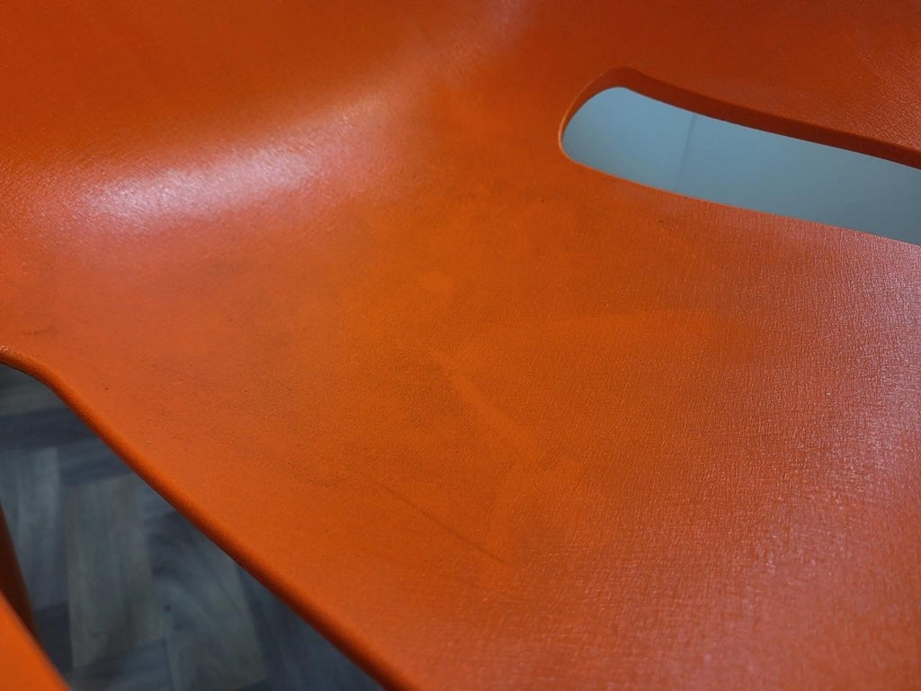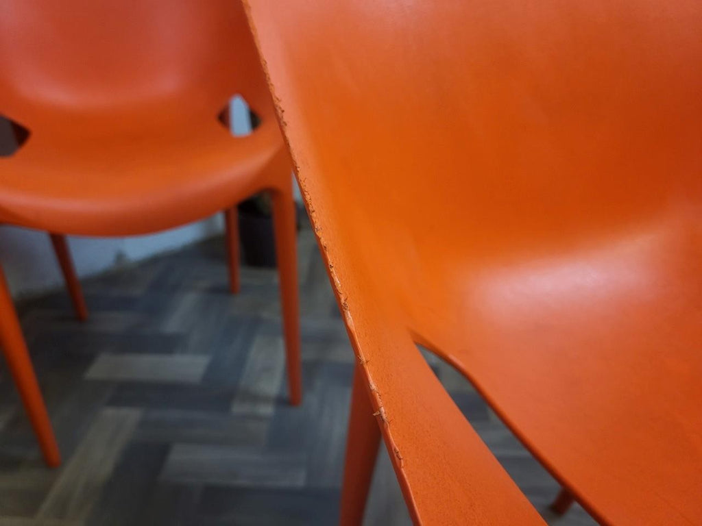 A retro set of plastic stacking chairs by Philippe Starck. Made in Italy, nice bright orange colour, made from heavy plastic so ideal to use outdoors too. At the time of listing we have more available too so please enquire if interested.