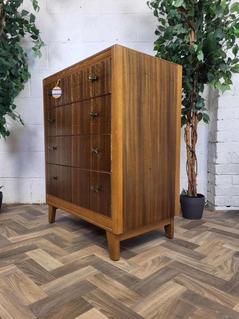 Vintage Mid-Century 60's Walnut Chest Of 4 Drawers Scandi Retro MCM