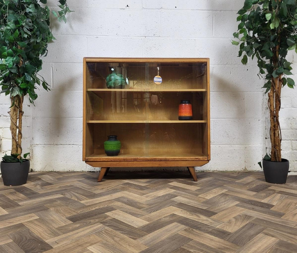 Vintage Mid-Century Avalon Yatton Small Walnut & Glass Bookcase Scandi Retro MCM