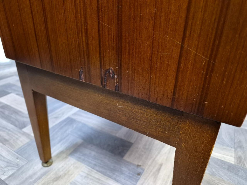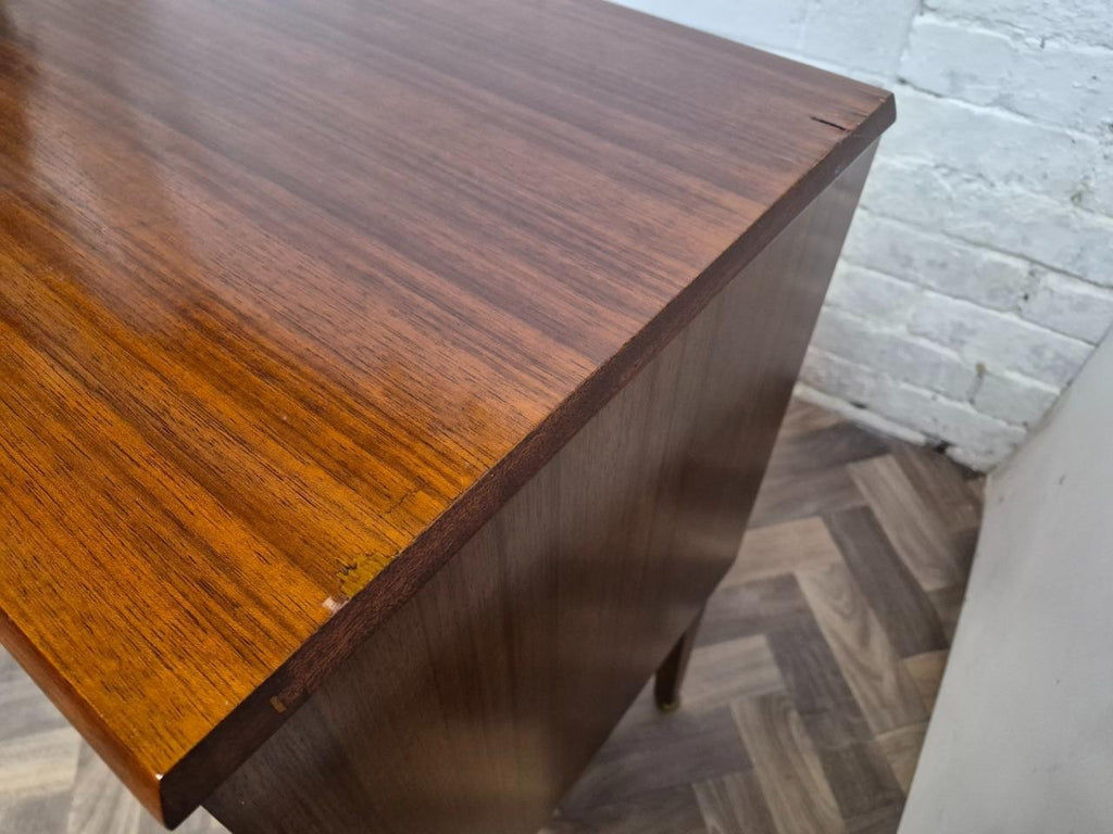 Very good vintage condition, lovely piece overall clean and solid & ready to use. Some minor age related surface marks/wear as shown, some veneer chips to lower left side & top right edge as shown, one left door had a broken catch so has had a more modern magnet catch replacement at some point not that you can see anyway.