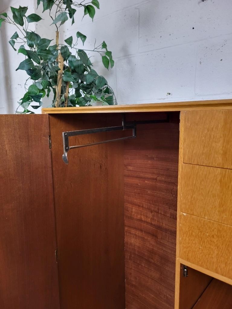 Vintage Mid-Century Meredew Gentlemans Wardrobe Tallboy Blonde Oak Retro MCM