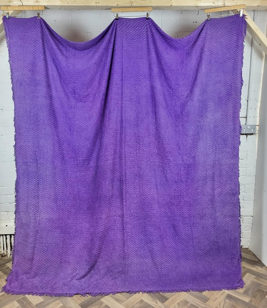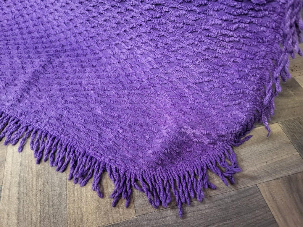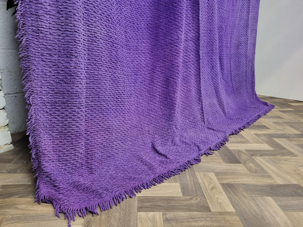 An original vintage 1960's/70's candlewick cotton bedspread. Lovely dark purple colour with curved fringed edge.