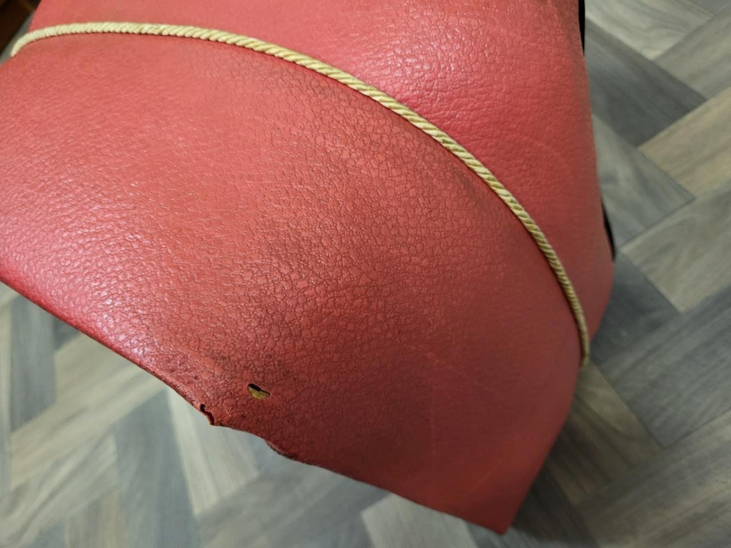 Vintage Mid-Century Red & Grey Stripe Vinyl Pouffe Footstool Retro 60's MCM