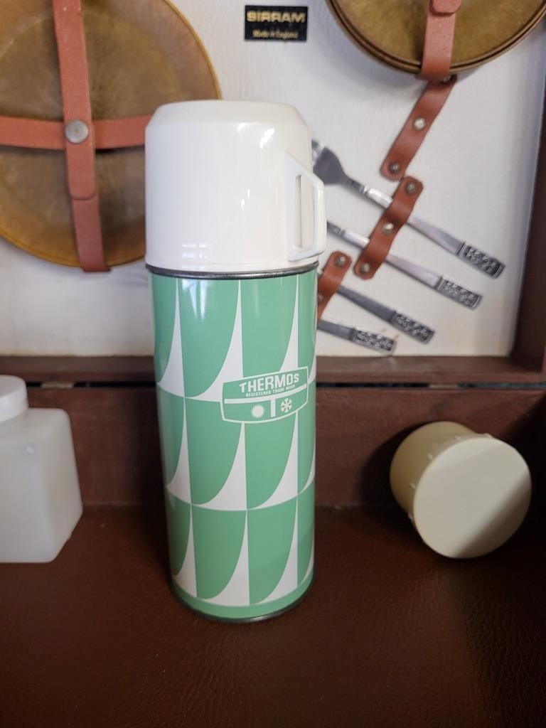 An original vintage mid-century picnic set by Sirram. Complete with plates, cutlery, mugs, tubs & Thermos flask. With original hard case.