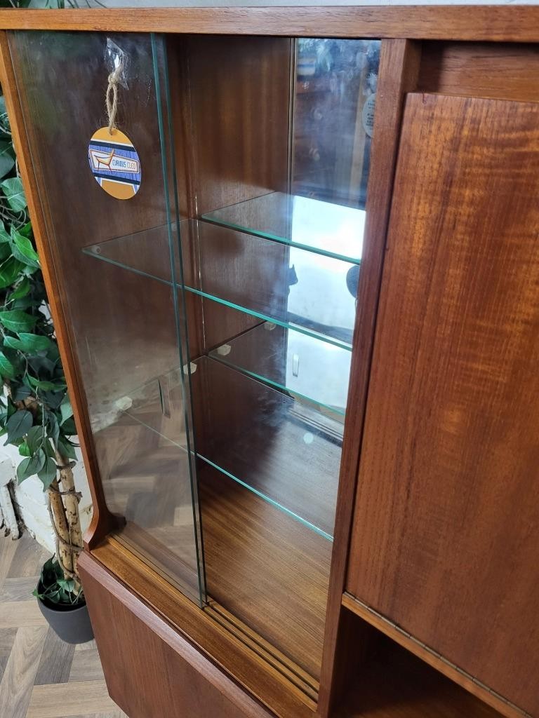 Vintage Mid-Century Teak & Glass Slim Cocktail Cabinet Bookcase Danish Scandi
