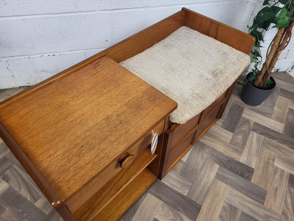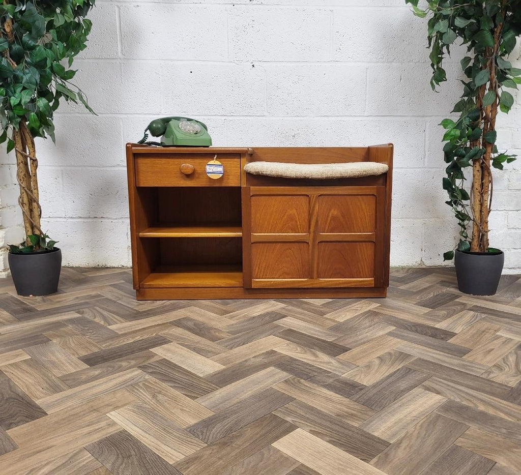 Vintage Nathan Teak Telephone Seat With Beige Seat Retro Mid-Century
